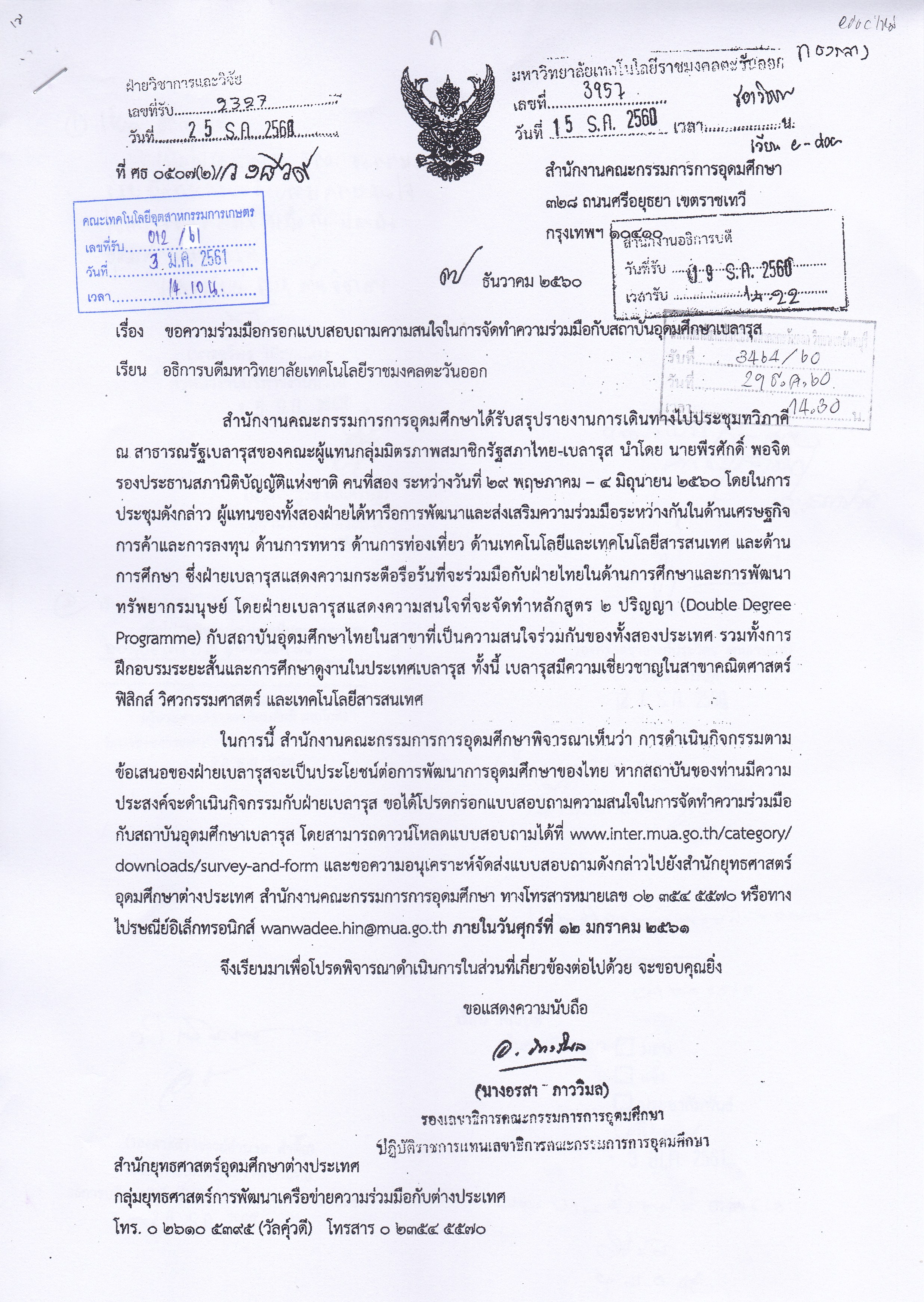 ขอความร่วมมือกรอกแบบสอบถามความสนใจการจัดทำความร่วมมือกับสถาบันอุดมศึกษาเบลารุส