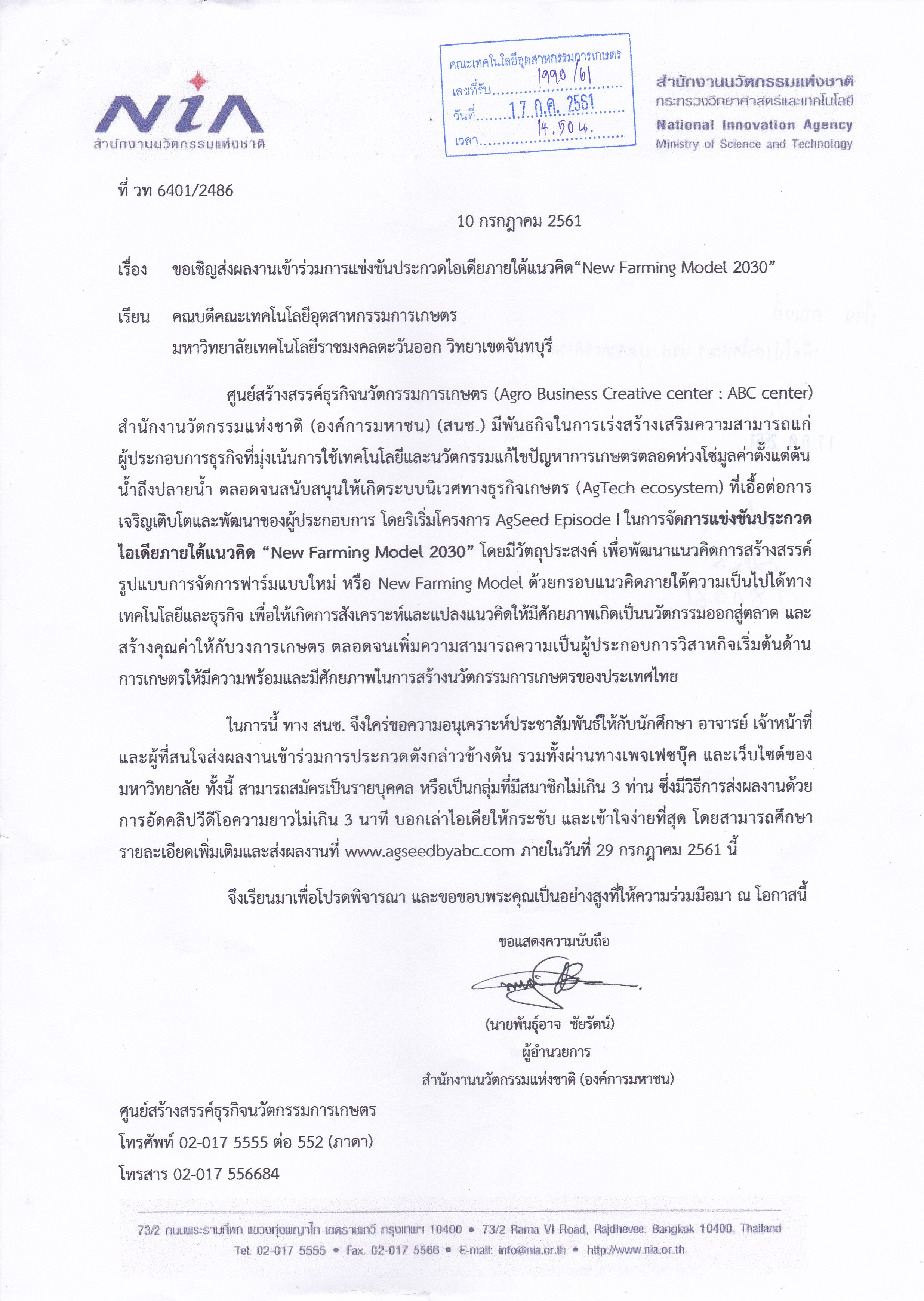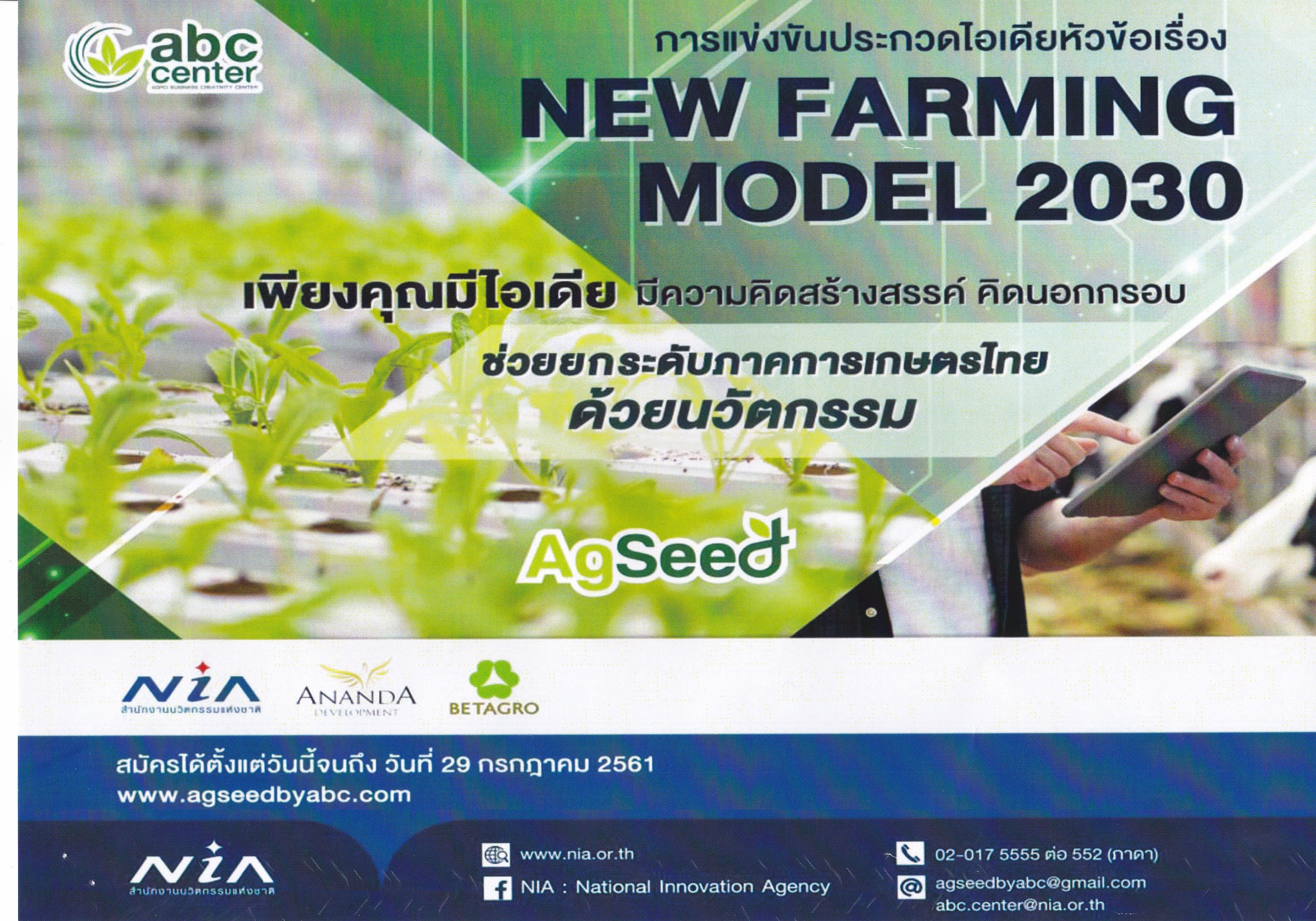 ขอเชิญส่งผลงานเข้าร่วมการแข่งขันประกวดไอเดียภายใต้แนวคิด "New Farming Model 2030"