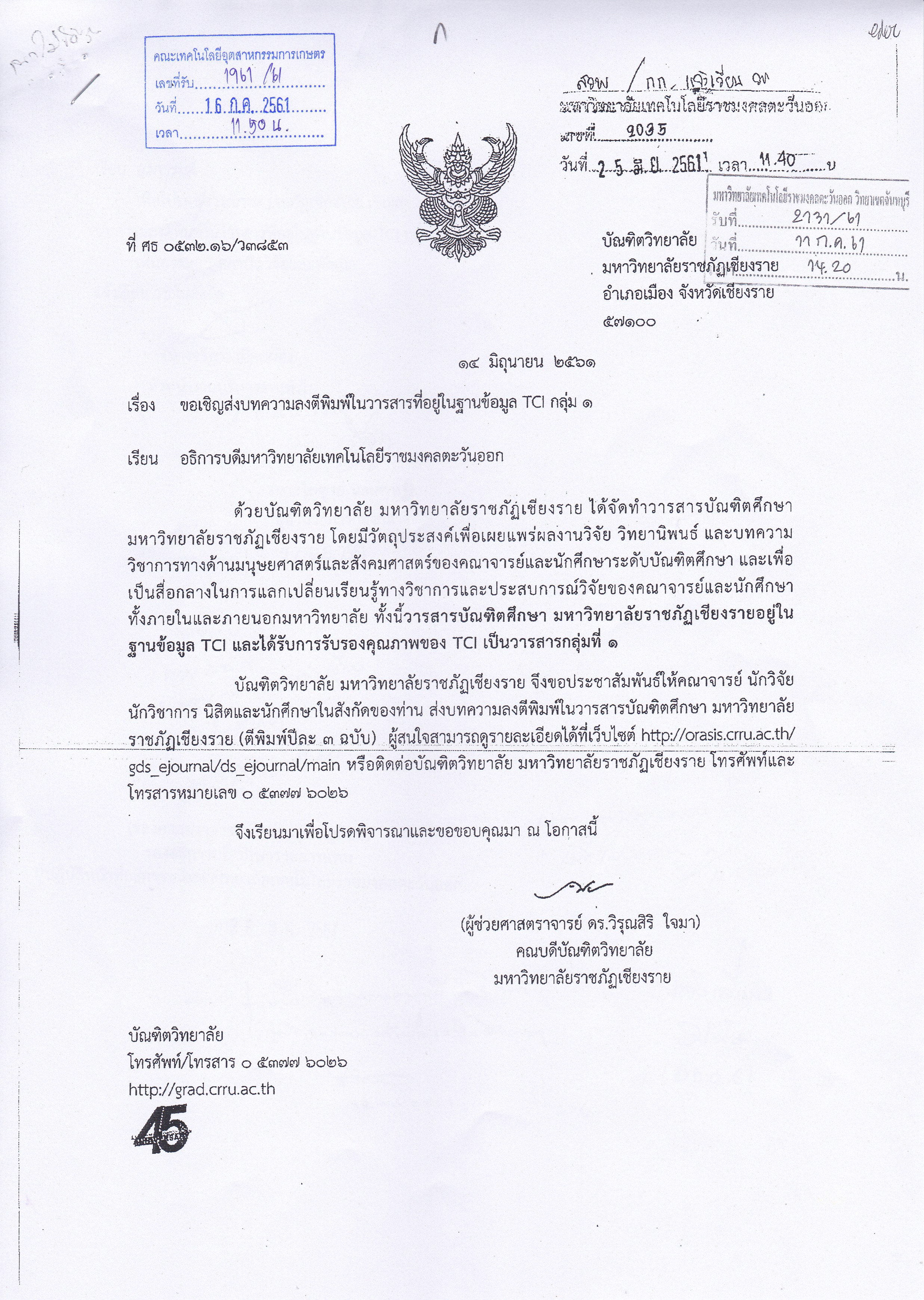 ขอเชิญส่งบทความลงตีพิมพ์ในวารสารที่อยู่ในฐานข้อมูล TCI กลุ่ม 1