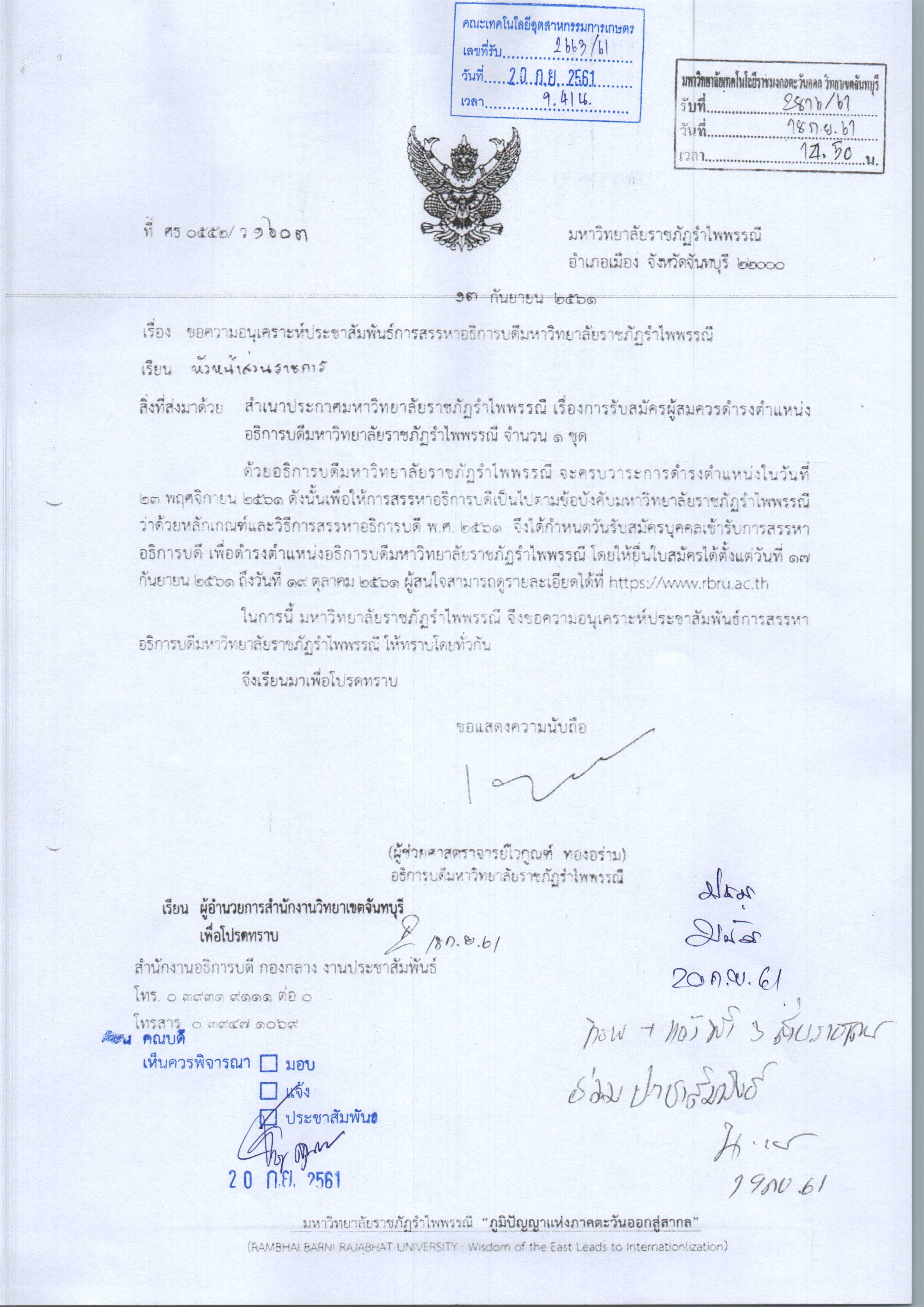 ประกาศ เรื่อง การสรรหาอธิการบดีมหาวิทยาลัยราชภัฏรำไพพรรณี