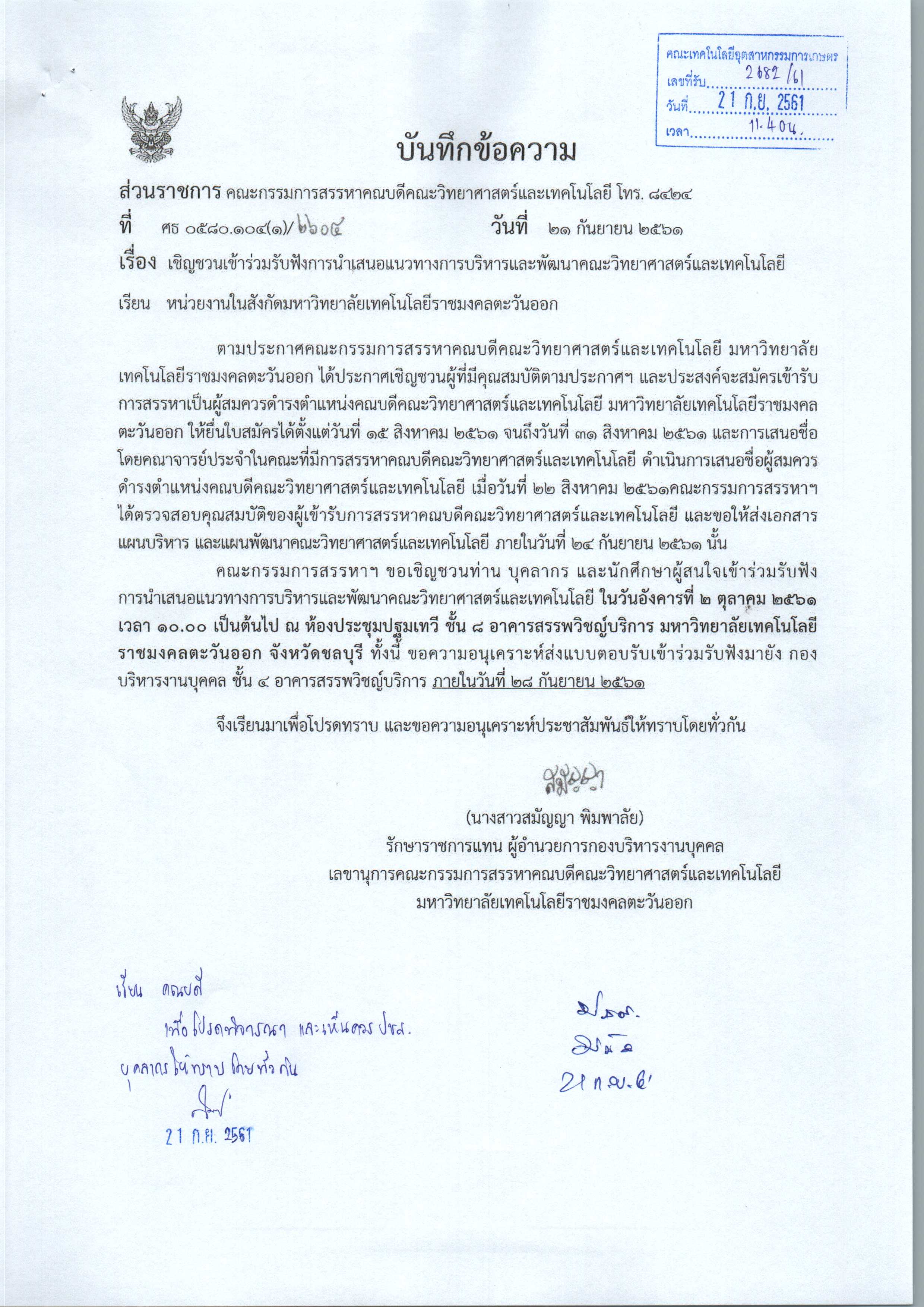 เชิญชวนเข้าร่วมฟังการนำเสนอแนวทางการบริหารและพัฒนาคณะวิทยาศาวตร์และเทคโนโลยี