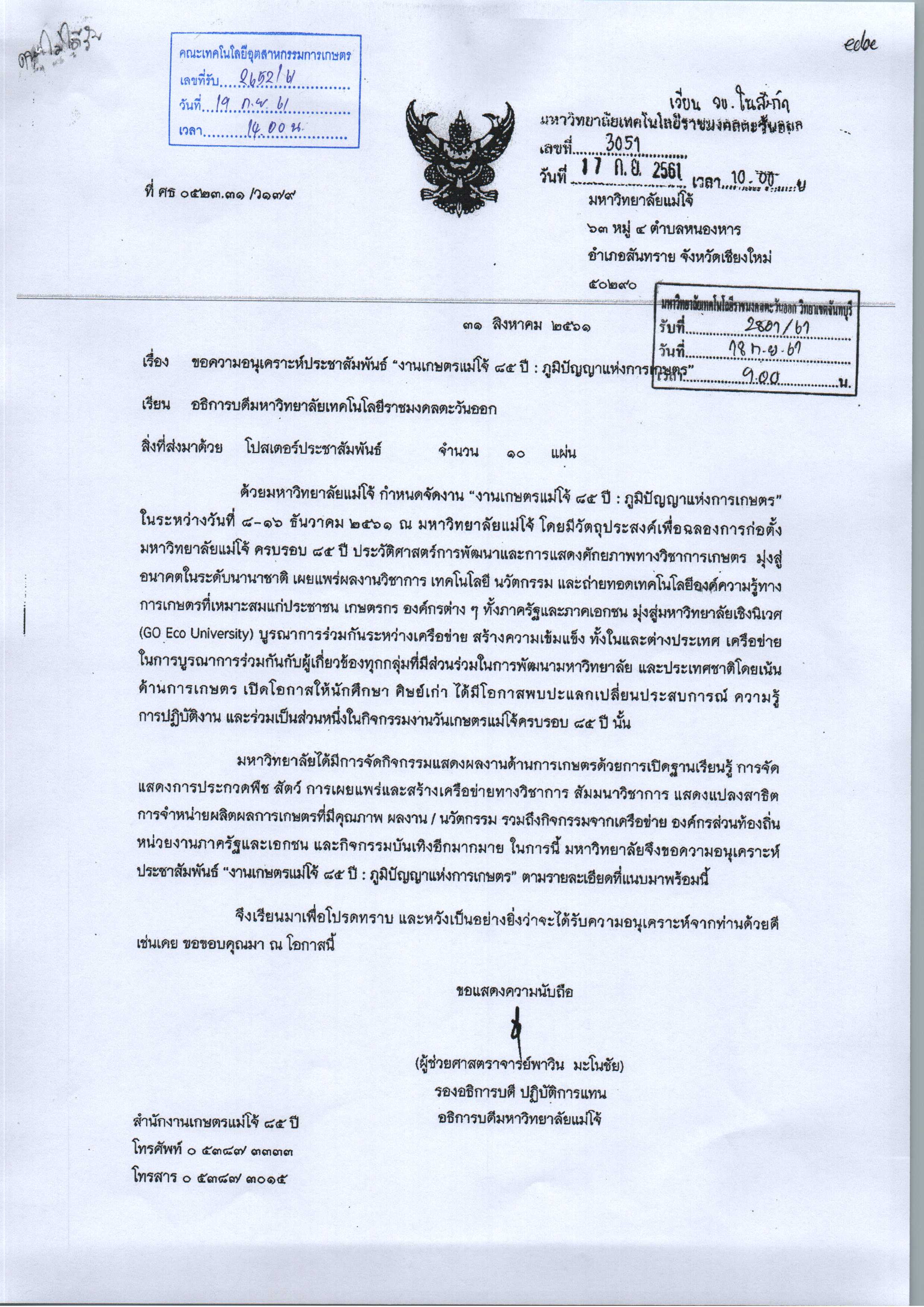 ประชาสัมพันธ์ "งานเกษตรแม่โจ้ 85 ปี : ภูมิปัญญาแห่งการเกษตร"