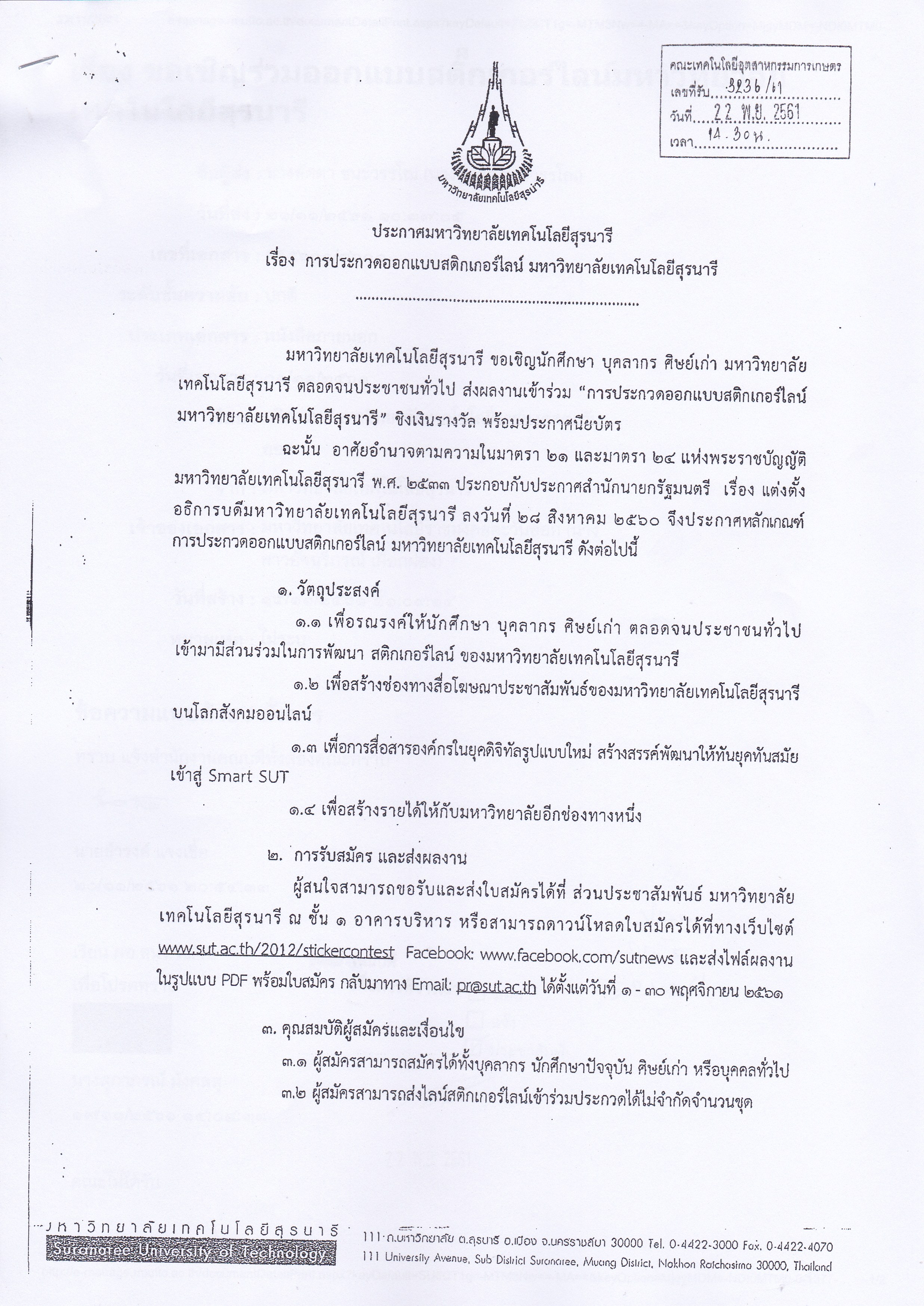 ขอเชิญร่วมออกแบบสติ๊กเกอร์ไลน์มหาวิทยาลัยเทคโนโลยีสุรนารี