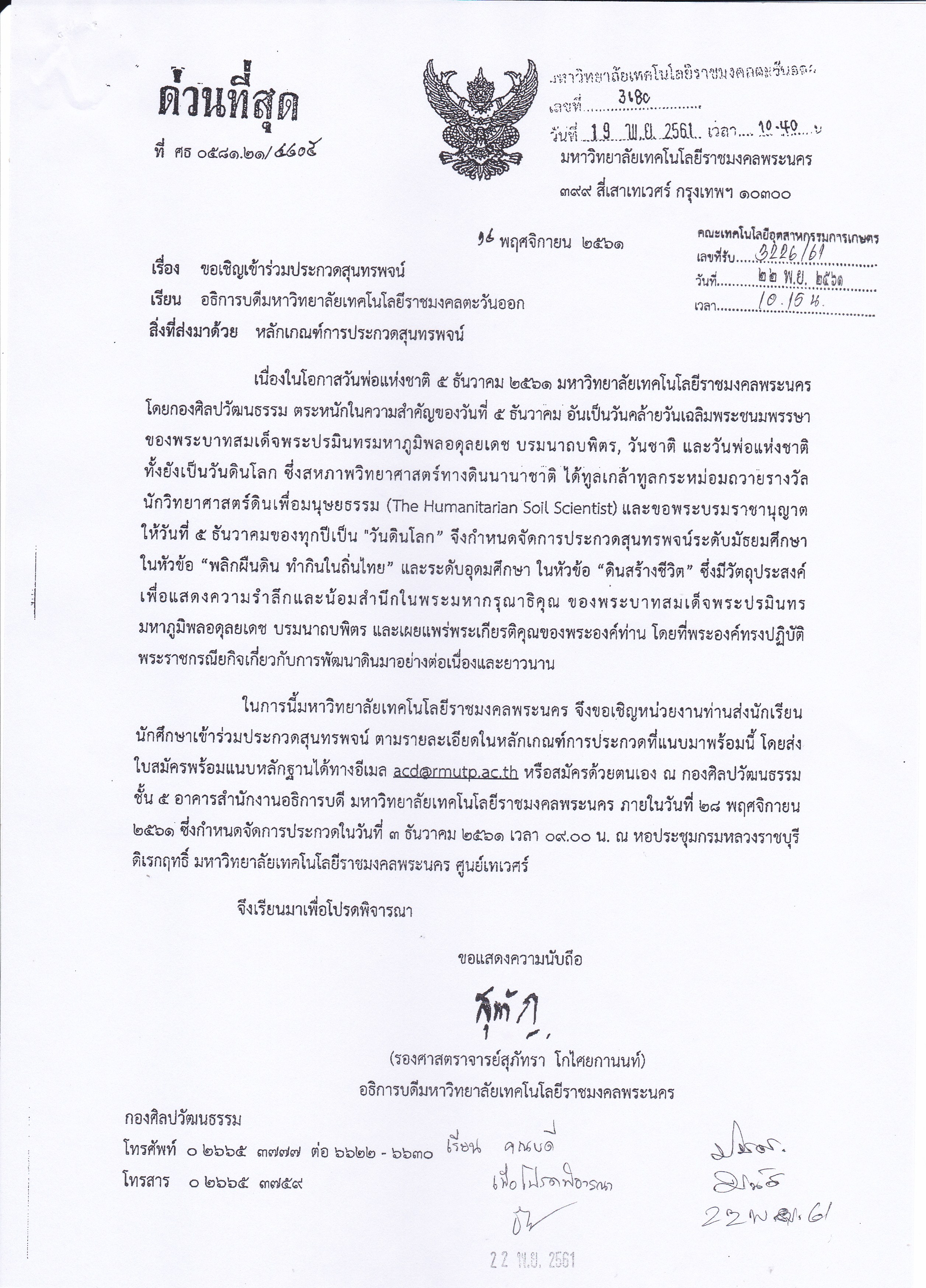 คำสั่งมหาวิทยาลัย เรื่องแต่งตั้งคณะอนุกรรมการกองทุนมหาวิทยาลัยเทคโนโลยีราชมงคลตะวันออก