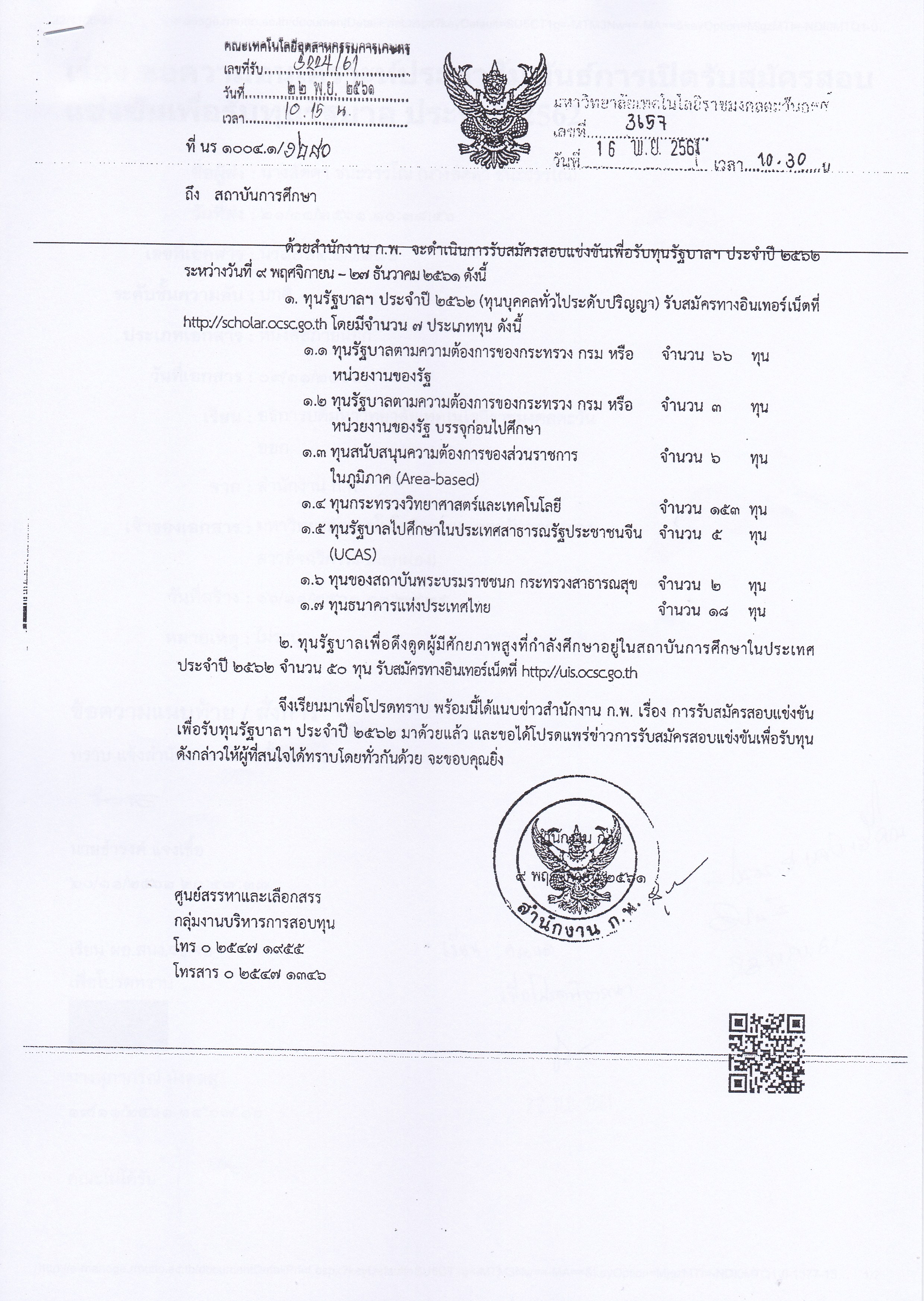 ประชาสัมพันธ์การเปิดรับสมัครสอบแข่งขันเพื่อรับทุนรัฐบาล ประจำปี 2562