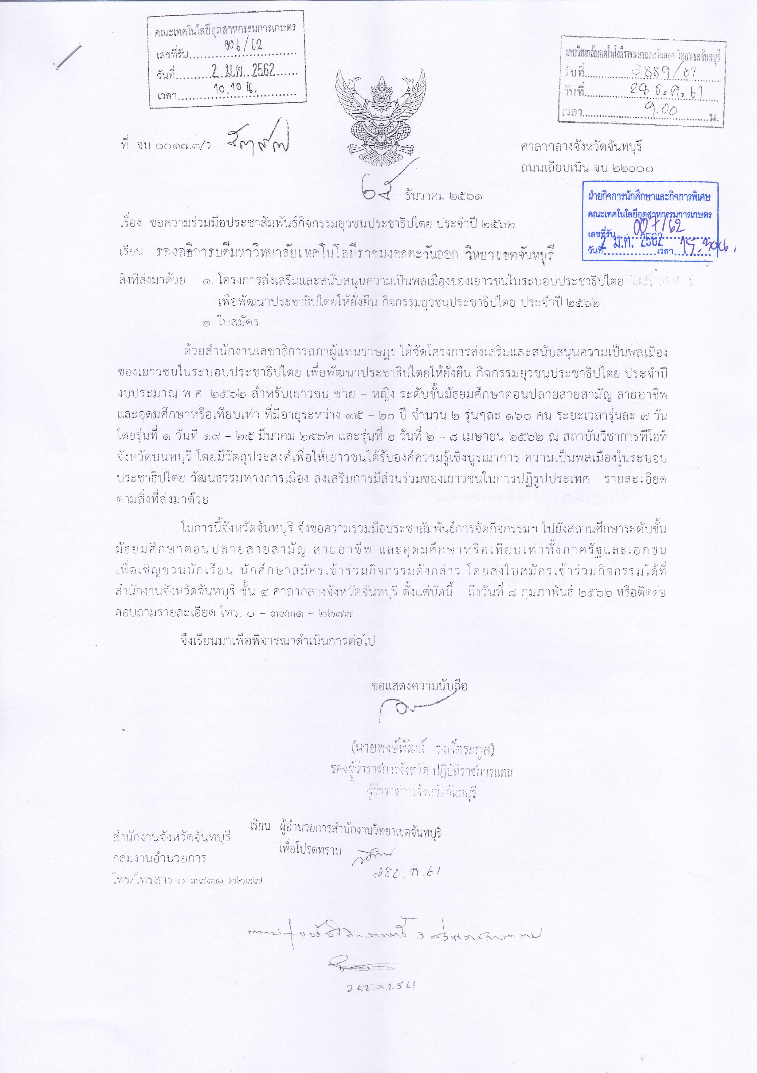 ประชาสัมพันธ์กิจกรรมยุวชนประชาธิปไตย ประจำปี 2562
