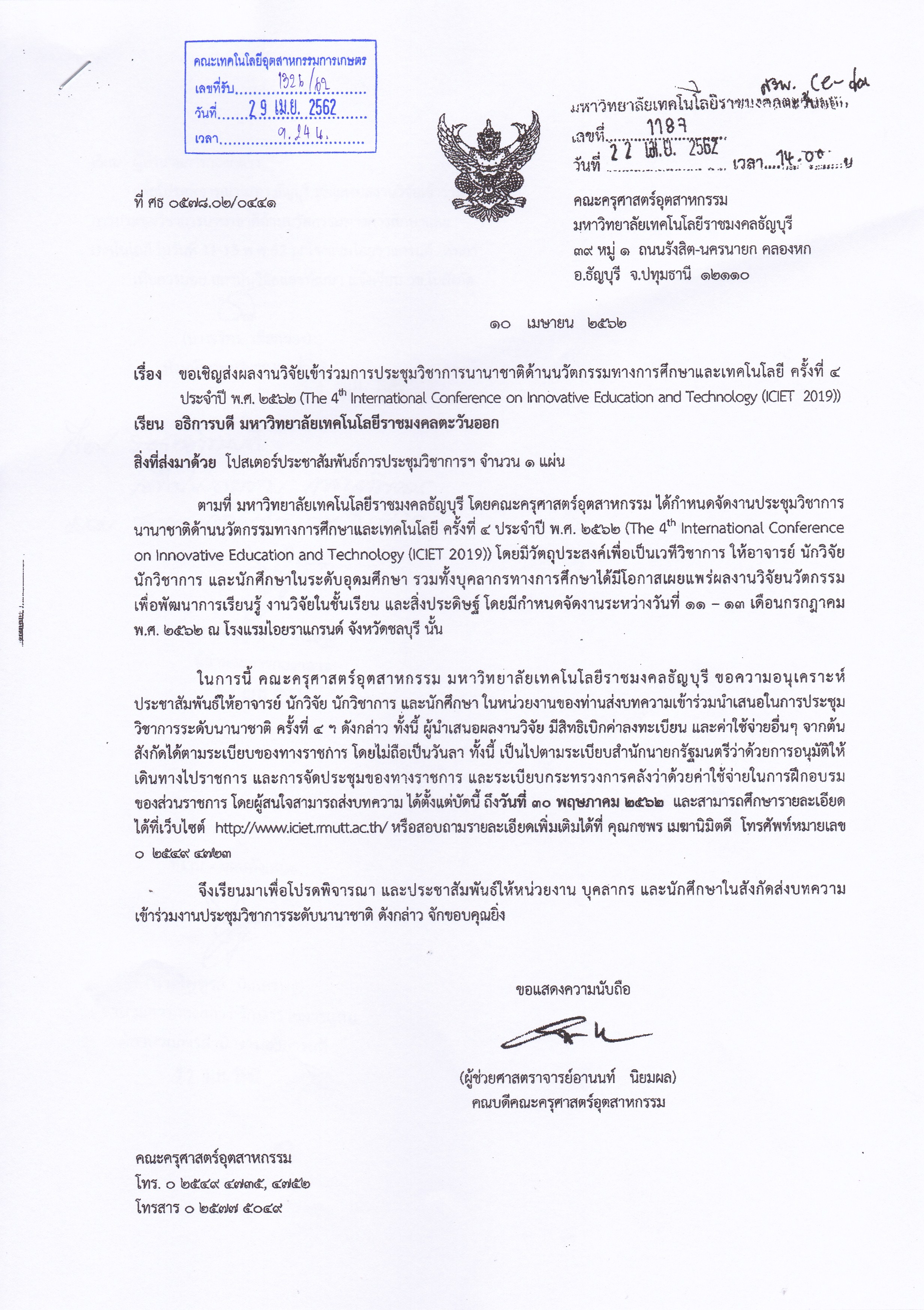 ขอเชิญส่งผลงานการวิจัยเข้าร่วมการประชุมวิชาการนานาชาติด้านนวัตกรรมทางการศึกษาและเทคโนโลยี ครั้งที่4