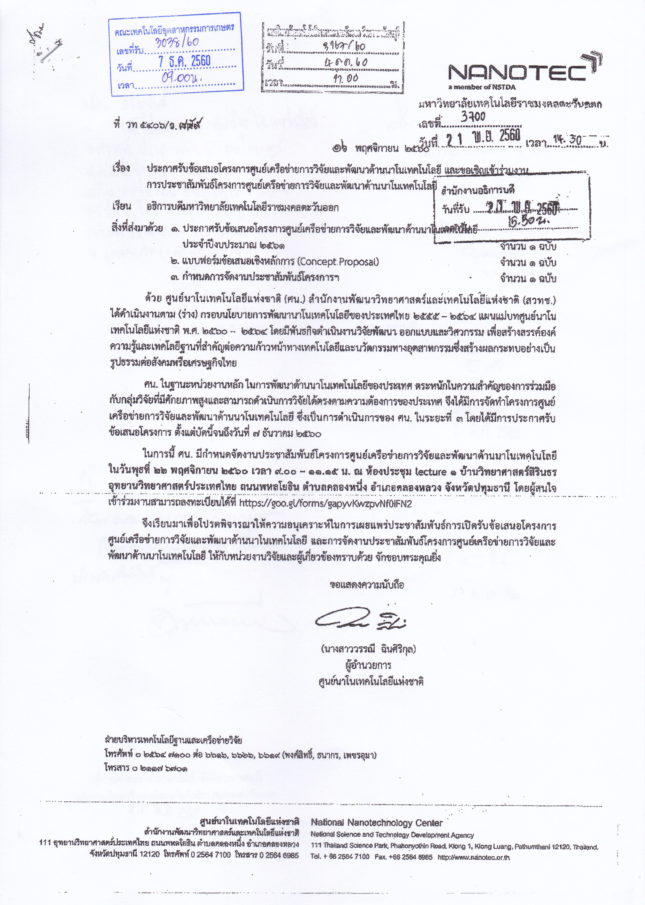 และขอเชิญเข้าร่วมงานการประชาสัมพันธ์โครงการศูนย์เครือข่ายการวิจัยและพัฒนาด้านเทคโนโลยี